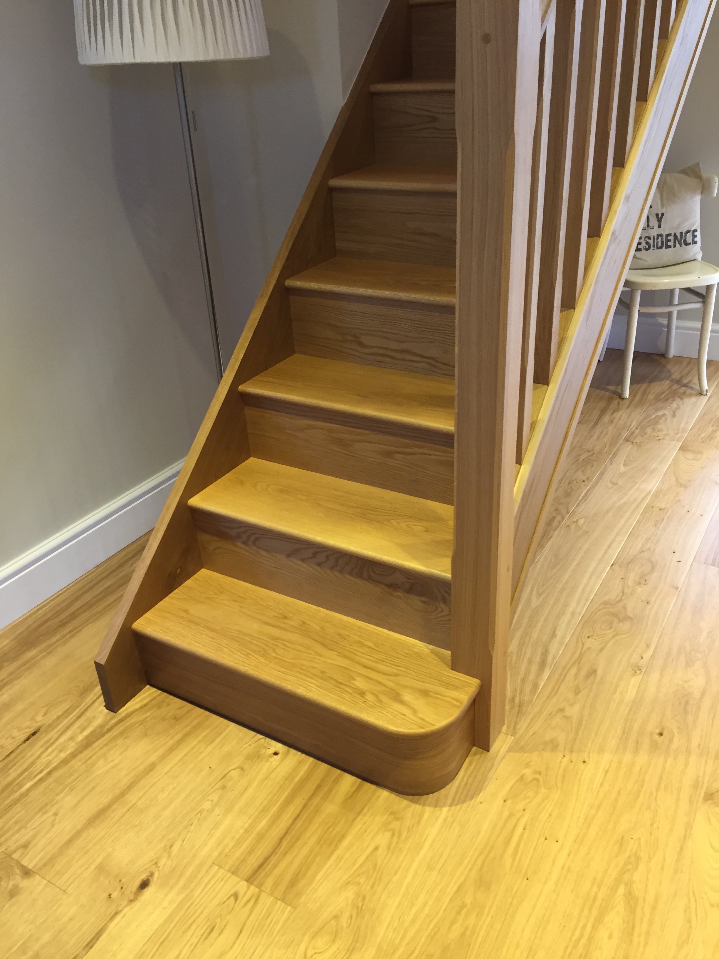The client was delighted with the finished staircase, saying "I am really so delighted with the stairs, they look really beautiful. The quality is excellent. The care and attention to detail from Arborfield Joinery has been second to none. It has been a first rate experience. From initially making contact with Arborfield Joinery until the work was complete I have had excellent service. When Jamie and Lewis arrived to install the staircase they ensured everything was completed to the highest standard showing care and attention to detail. Nothing was too much trouble resulting in a fine end result."