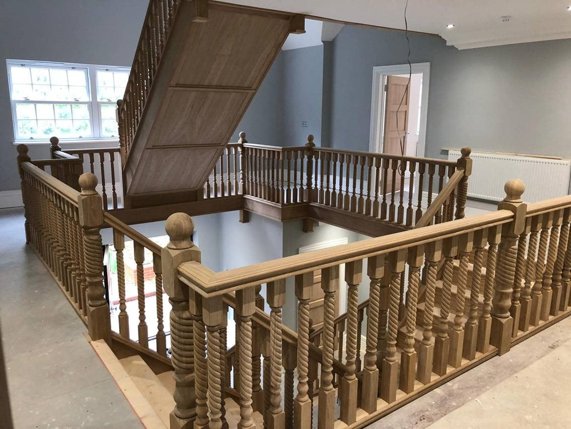 Replacement balustrading for a residence in Wokingham. The original staircase had turned newels and spindles and the client wanted it modernised but without going to the expense of replacing the entire flight.